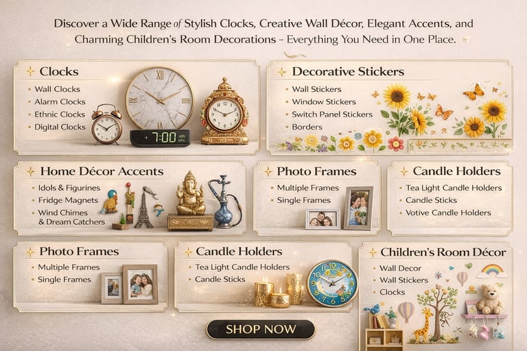 Discover a wide range of stylish clocks, creative wall décor, elegant accents, and charming children’s room decorations — everything you need to beautifully transform your space in one place.