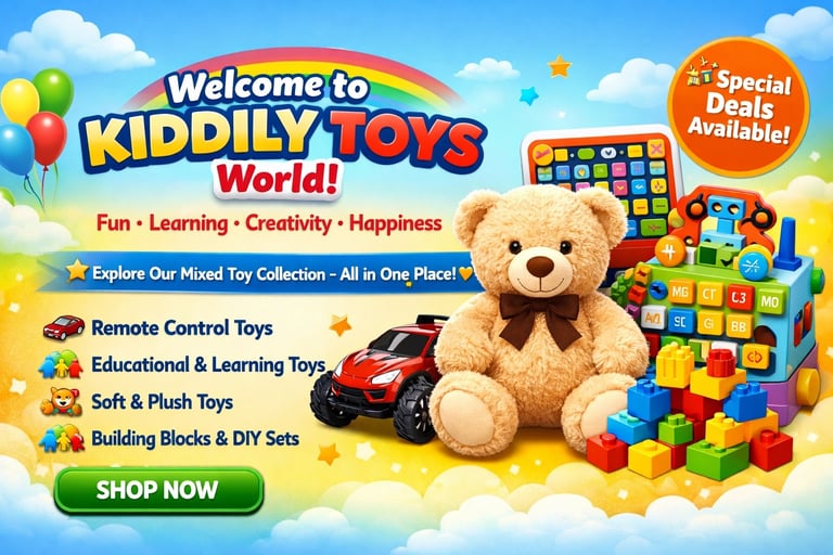 Explore a fun-filled collection of remote control toys, educational games, plush toys, and building blocks — all in one place. Perfect for learning, creativity, and joyful playtime! 🎁✨